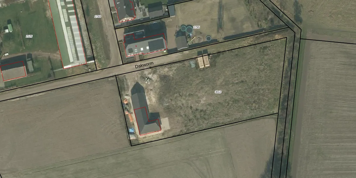 Het perceel waarop Dakworm 14 staat heeft een oppervlakte van 3715 m². Dit is een zeer groot perceel. De perceeloppervlakte wordt geregistreerd door het Kadaster. Gedetailleerde informatie over de maten van dit perceel kunt u vinden in het rapport Kadastrale kaart met maatvoering van Dakworm 14.