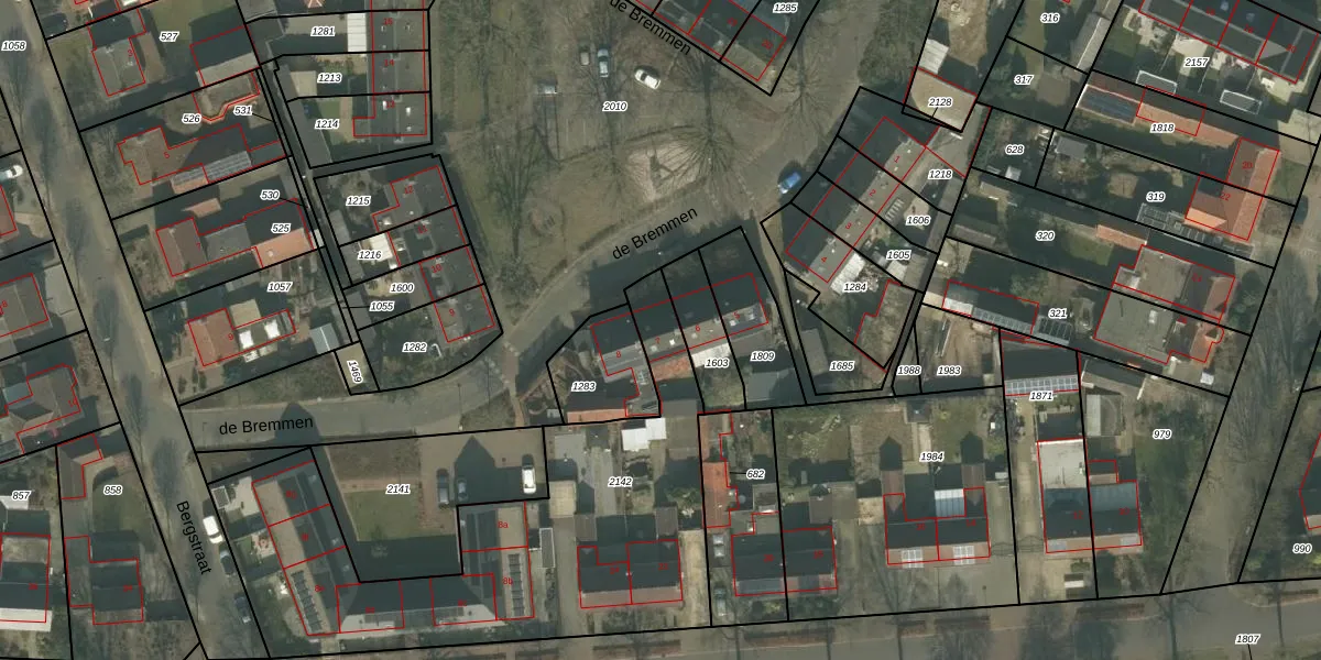 Het perceel waarop de Bremmen 7 staat heeft een oppervlakte van 1839 m². Dit is een zeer groot perceel. De perceeloppervlakte wordt geregistreerd door het Kadaster. Gedetailleerde informatie over de maten van dit perceel kunt u vinden in het rapport Kadastrale kaart met maatvoering van de Bremmen 7.