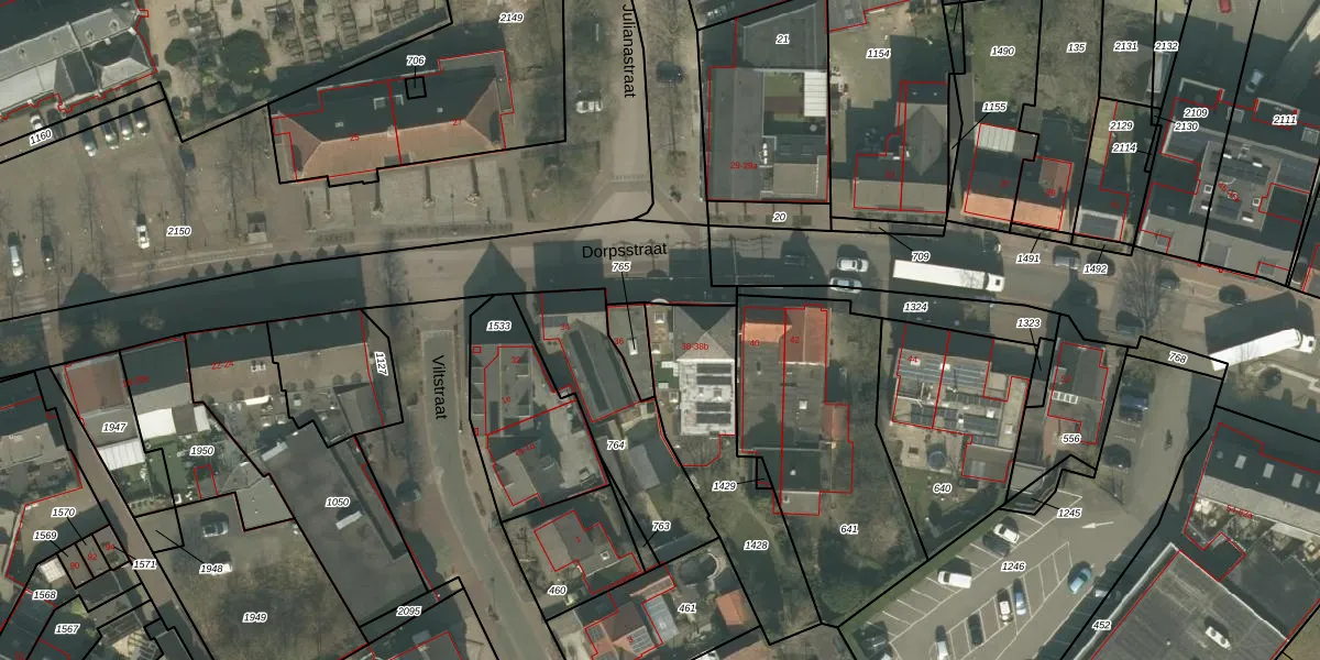 Het perceel waarop Dorpsstraat 38 staat heeft een oppervlakte van 572 m². Dit is een groot perceel. De perceeloppervlakte wordt geregistreerd door het Kadaster. Gedetailleerde informatie over de maten van dit perceel kunt u vinden in het rapport Kadastrale kaart met maatvoering van Dorpsstraat 38.