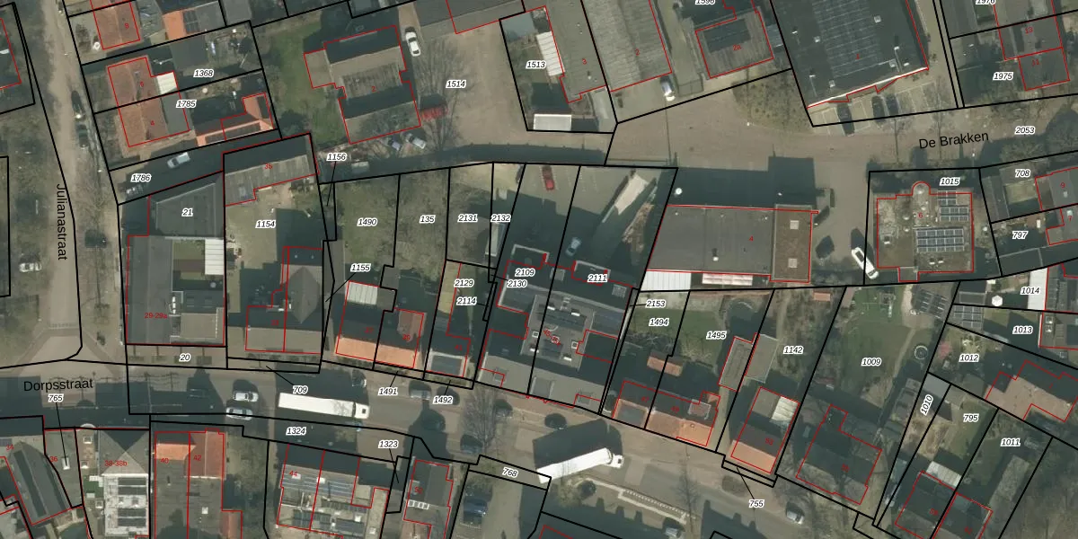 Het perceel waarop Dorpsstraat 45-f staat heeft een oppervlakte van 442 m². Dit is een groot perceel. De perceeloppervlakte wordt geregistreerd door het Kadaster. Gedetailleerde informatie over de maten van dit perceel kunt u vinden in het rapport Kadastrale kaart met maatvoering van Dorpsstraat 45-f.