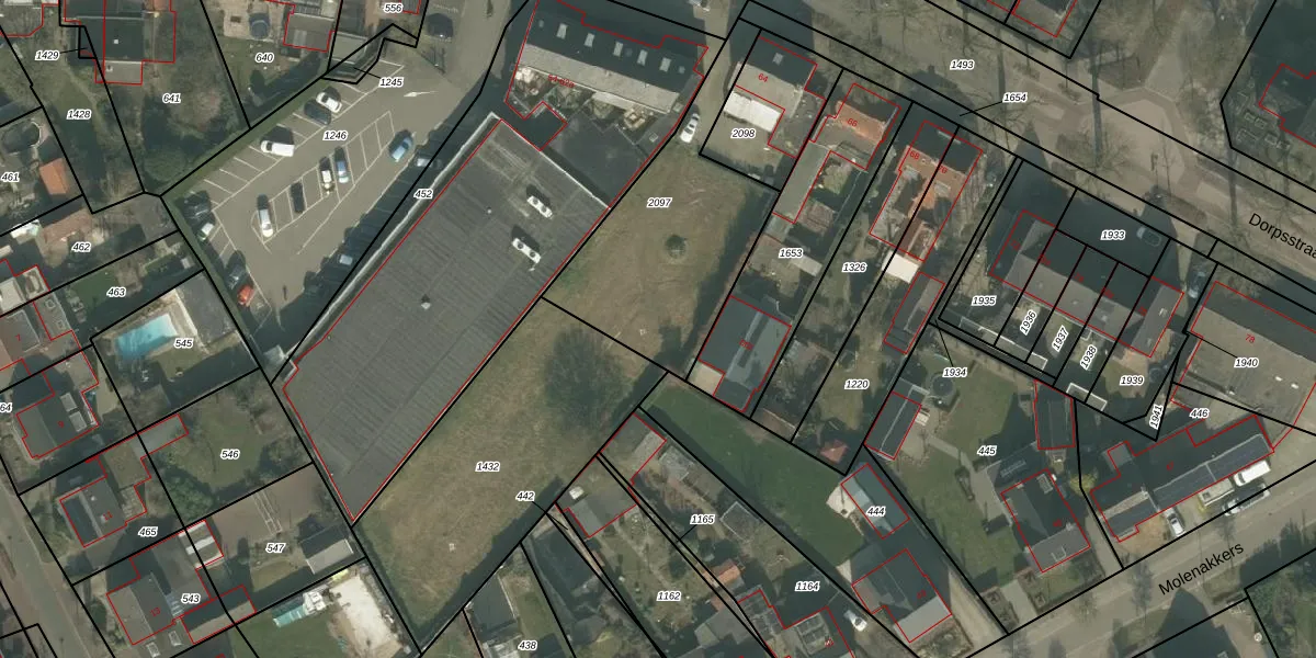 Het perceel waarop Dorpsstraat 64-b staat heeft een oppervlakte van 786 m². Dit is een groot perceel. De perceeloppervlakte wordt geregistreerd door het Kadaster. Gedetailleerde informatie over de maten van dit perceel kunt u vinden in het rapport Kadastrale kaart met maatvoering van Dorpsstraat 64-b.