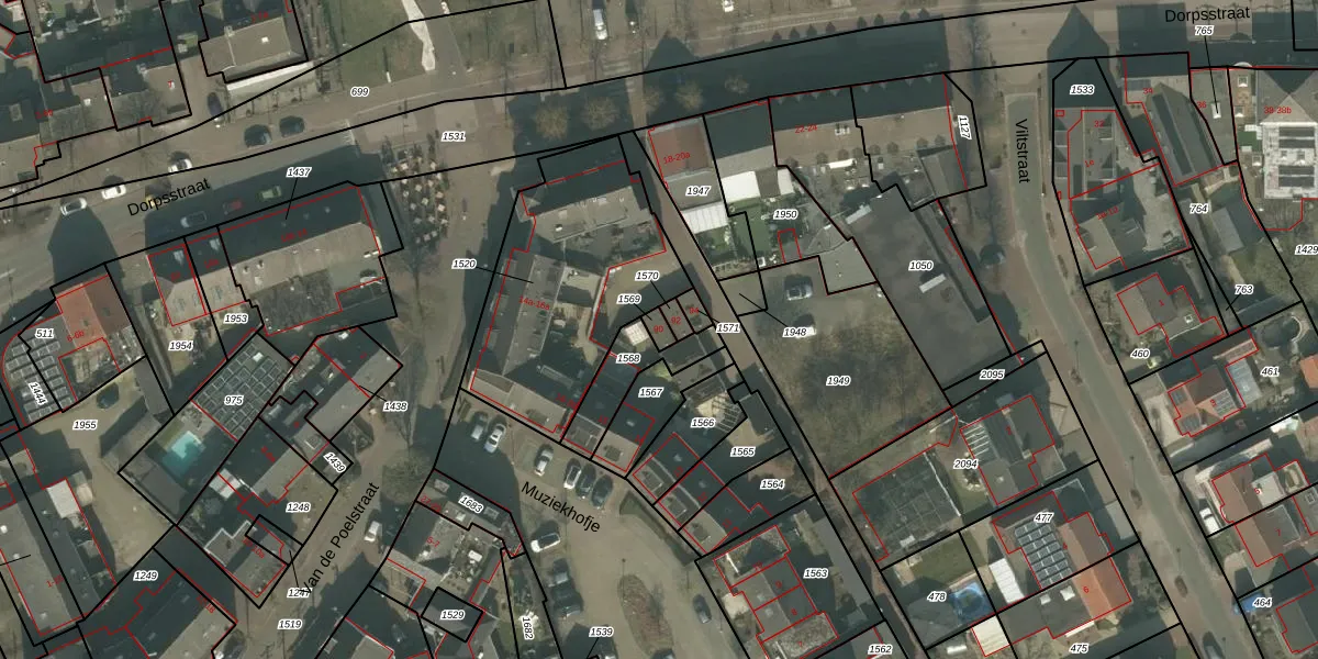 Gebruik de zoekbalk of klik op een perceel voor informatie over de adressen binnen dit perceel.