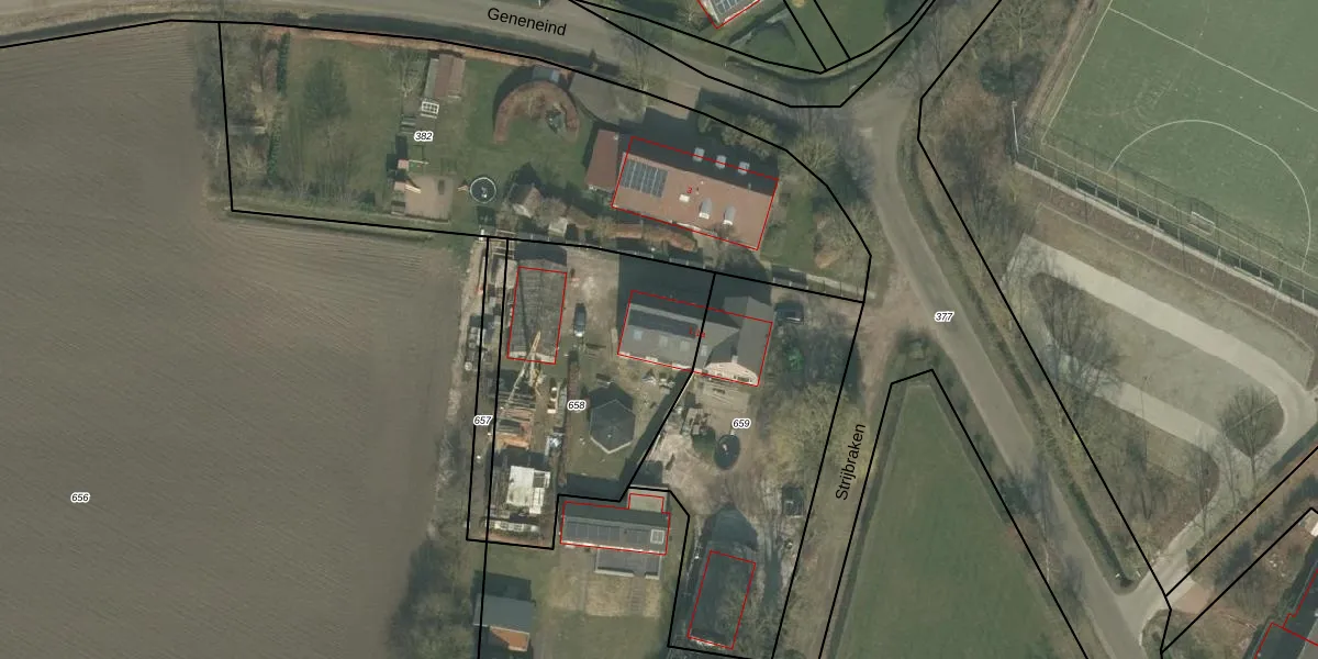 Het perceel waarop het adres ligt is BKL02-U-658. De afkorting 'BKL02' staat voor kadastrale gemeente Bakel en Milheeze. De gemiddelde perceelgrootte in Bakel en Milheeze is 9044 m². Dit perceel is kleiner: de perceeloppervlakte bedraagt 1135 m². Het kleinste perceel in de kadastrale gemeente is 0 m² groot. De grootste perceeloppervlakte is 1,18 km². Dit is het enige adres dat aanwezig is op het perceel. De huidige grenzen van het perceel zijn digitaal in de Basisregistratie Kadaster (BRK) geregistreerd op 27-03-2018.