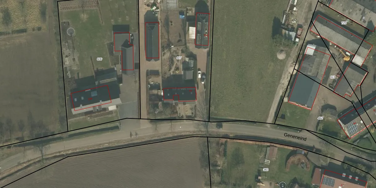 Het perceel waarop Geneneind 10 staat heeft een oppervlakte van 2700 m². Dit is een zeer groot perceel. De perceeloppervlakte wordt geregistreerd door het Kadaster. Gedetailleerde informatie over de maten van dit perceel kunt u vinden in het rapport Kadastrale kaart met maatvoering van Geneneind 10.