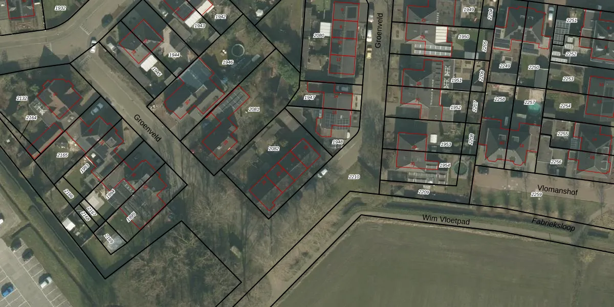 Het perceel waarop Groenveld 18 staat heeft een oppervlakte van 656 m². Dit is een groot perceel. De perceeloppervlakte wordt geregistreerd door het Kadaster. Gedetailleerde informatie over de maten van dit perceel kunt u vinden in het rapport Kadastrale kaart met maatvoering van Groenveld 18.