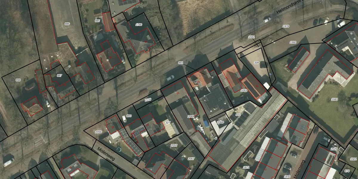 Het perceel waarop Helmondsestraat 21 staat heeft een oppervlakte van 680 m². Dit is een groot perceel. De perceeloppervlakte wordt geregistreerd door het Kadaster. Gedetailleerde informatie over de maten van dit perceel kunt u vinden in het rapport Kadastrale kaart met maatvoering van Helmondsestraat 21.