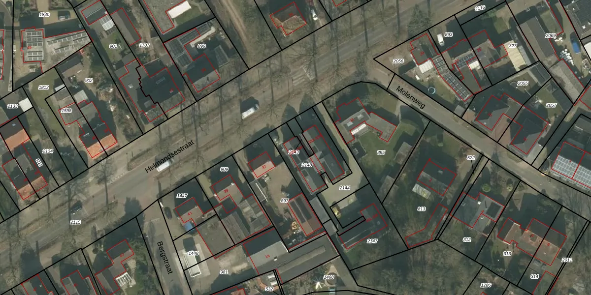 Helmondsestraat 33-b is gelegen op kadastraal perceel BKL02T2148. Deze kadastrale aanduiding is uniek en wordt gebruikt door het Kadaster om eigendomsrechten en andere zakelijke rechten vast te leggen. Het perceel maakt onderdeel uit van de kadastrale gemeente Bakel en Milheeze.