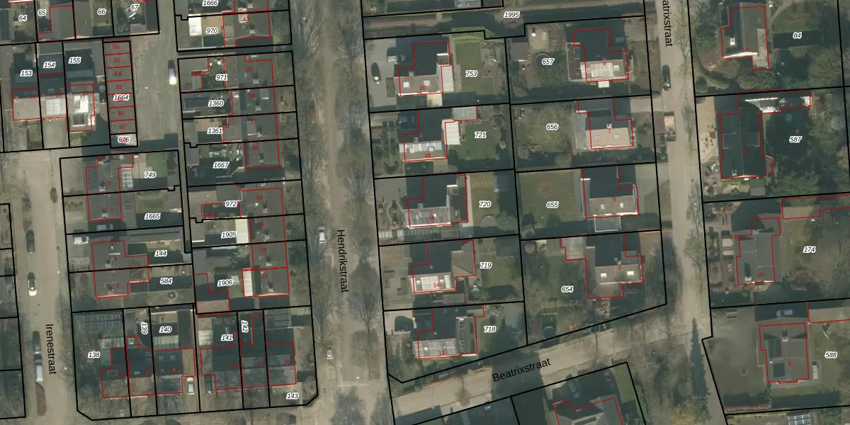 Gebruik de zoekbalk of klik op een perceel voor informatie over de adressen binnen dit perceel.