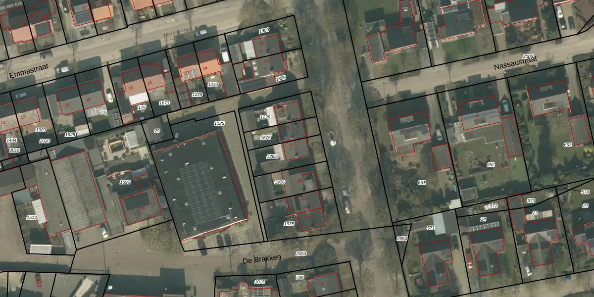 Gebruik de zoekbalk of klik op een perceel voor informatie over de adressen binnen dit perceel.