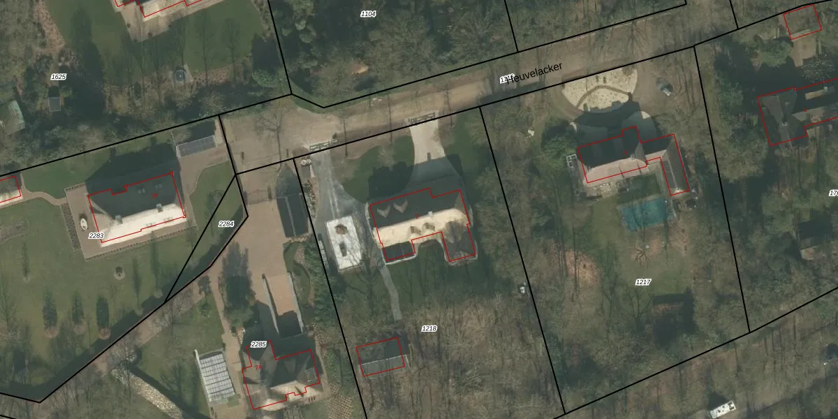 Het perceel waarop Heuvelacker 2 staat heeft een oppervlakte van 3635 m². Dit is een zeer groot perceel. De perceeloppervlakte wordt geregistreerd door het Kadaster. Gedetailleerde informatie over de maten van dit perceel kunt u vinden in het rapport Kadastrale kaart met maatvoering van Heuvelacker 2.
