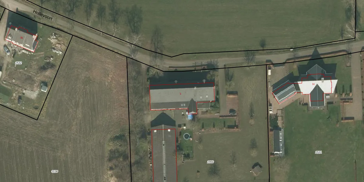 Het perceel waarop Hollevoort 3 staat heeft een oppervlakte van 7960 m². Dit is een zeer groot perceel. De perceeloppervlakte wordt geregistreerd door het Kadaster. Gedetailleerde informatie over de maten van dit perceel kunt u vinden in het rapport Kadastrale kaart met maatvoering van Hollevoort 3.