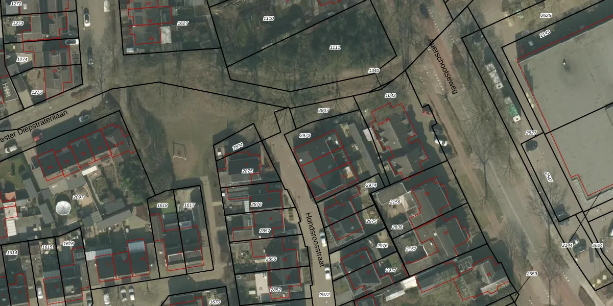 Het perceel waarop Hondsroosstraat 1 staat heeft een oppervlakte van 627 m². Dit is een groot perceel. De perceeloppervlakte wordt geregistreerd door het Kadaster. Gedetailleerde informatie over de maten van dit perceel kunt u vinden in het rapport Kadastrale kaart met maatvoering van Hondsroosstraat 1.