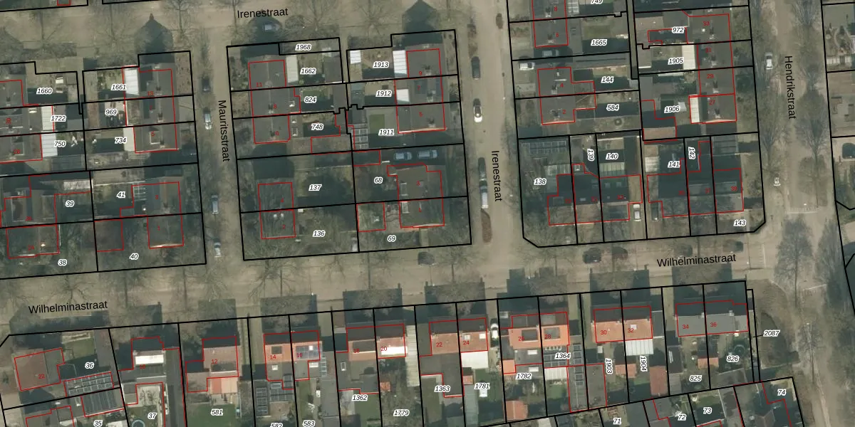 Gebruik de zoekbalk of klik op een perceel voor informatie over de adressen binnen dit perceel.