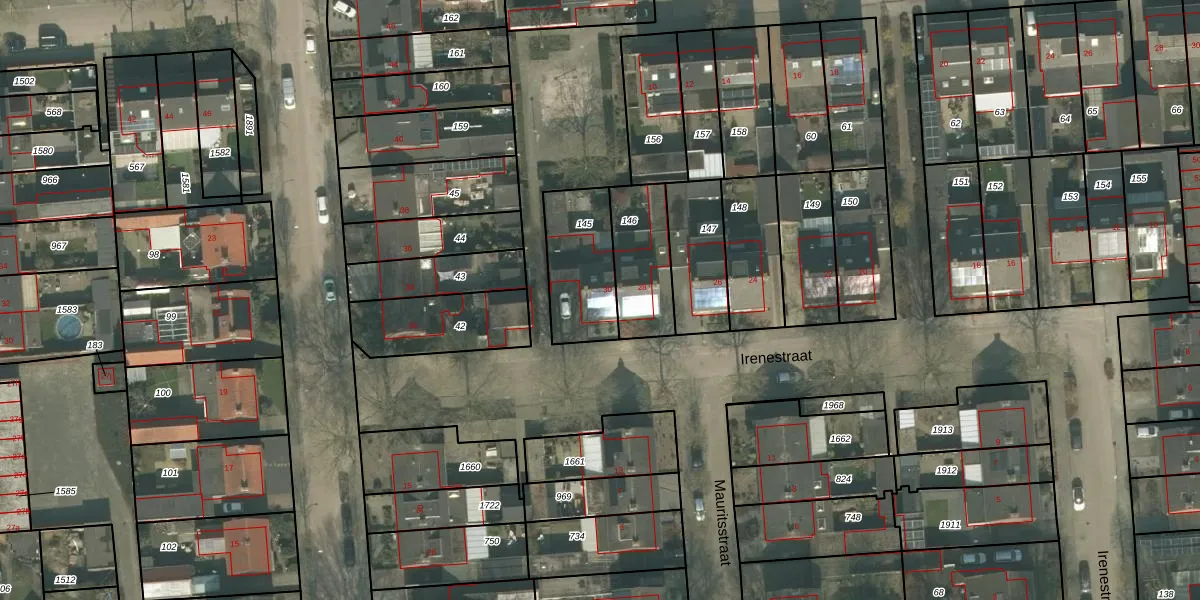 Het perceel waarop Irenestraat 30 staat heeft een oppervlakte van 282 m². Dit is een middelgroot perceel. De perceeloppervlakte wordt geregistreerd door het Kadaster. Gedetailleerde informatie over de maten van dit perceel kunt u vinden in het rapport Kadastrale kaart met maatvoering van Irenestraat 30.