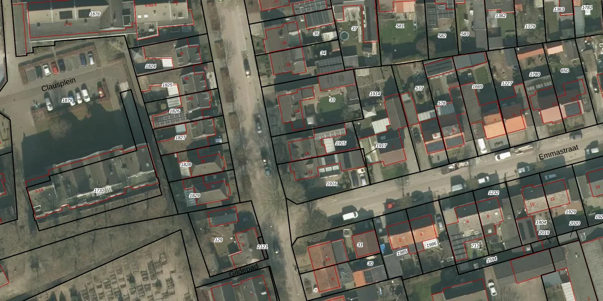 Gebruik de zoekbalk of klik op een perceel voor informatie over de adressen binnen dit perceel.