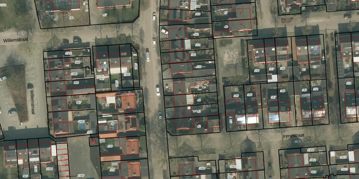 Gebruik de zoekbalk of klik op een perceel voor informatie over de adressen binnen dit perceel.