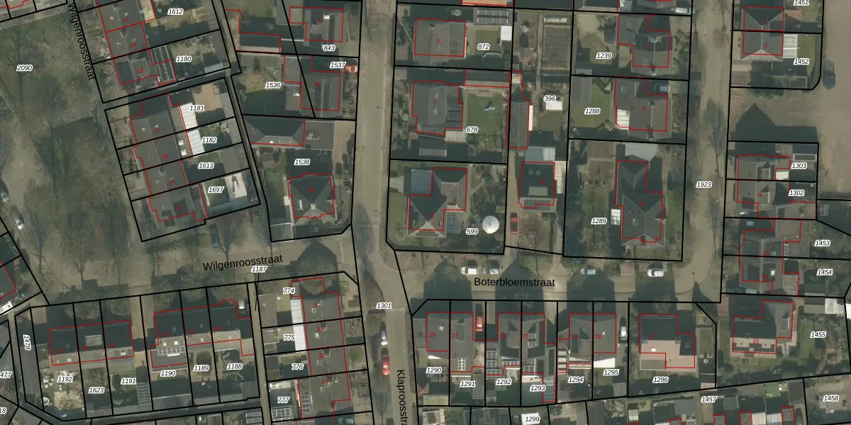 Het perceel waarop Klaproosstraat 9 staat heeft een oppervlakte van 584 m². Dit is een groot perceel. De perceeloppervlakte wordt geregistreerd door het Kadaster. Gedetailleerde informatie over de maten van dit perceel kunt u vinden in het rapport Kadastrale kaart met maatvoering van Klaproosstraat 9.