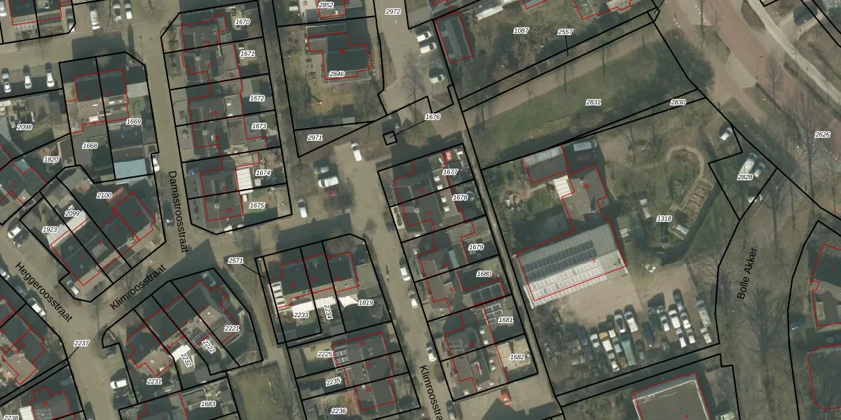 Gebruik de zoekbalk of klik op een perceel voor informatie over de adressen binnen dit perceel.
