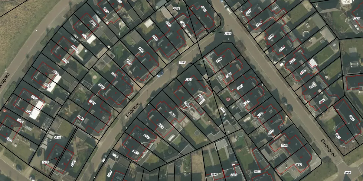 Het perceel waarop Kogelpot 10 staat heeft een oppervlakte van 381 m². Dit is een groot perceel. De perceeloppervlakte wordt geregistreerd door het Kadaster. Gedetailleerde informatie over de maten van dit perceel kunt u vinden in het rapport Kadastrale kaart met maatvoering van Kogelpot 10.