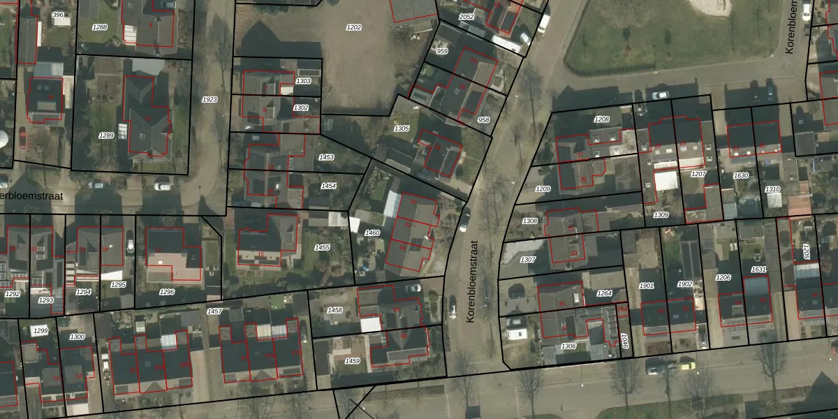 Het perceel waarop Korenbloemstraat 20 staat heeft een oppervlakte van 602 m². Dit is een groot perceel. De perceeloppervlakte wordt geregistreerd door het Kadaster. Gedetailleerde informatie over de maten van dit perceel kunt u vinden in het rapport Kadastrale kaart met maatvoering van Korenbloemstraat 20.