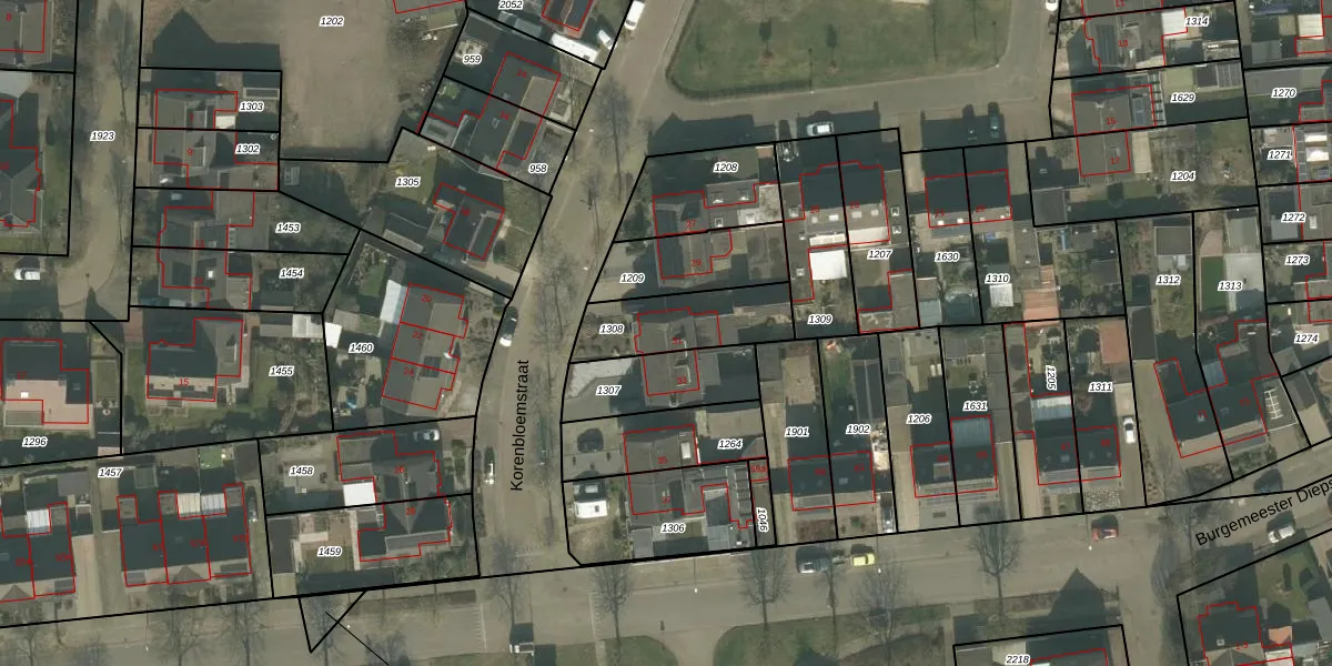 Het perceel waarop Korenbloemstraat 31 staat heeft een oppervlakte van 277 m². Dit is een middelgroot perceel. De perceeloppervlakte wordt geregistreerd door het Kadaster. Gedetailleerde informatie over de maten van dit perceel kunt u vinden in het rapport Kadastrale kaart met maatvoering van Korenbloemstraat 31.