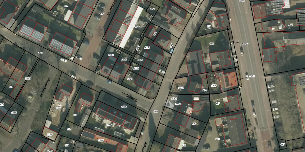 Gebruik de zoekbalk of klik op een perceel voor informatie over de adressen binnen dit perceel.