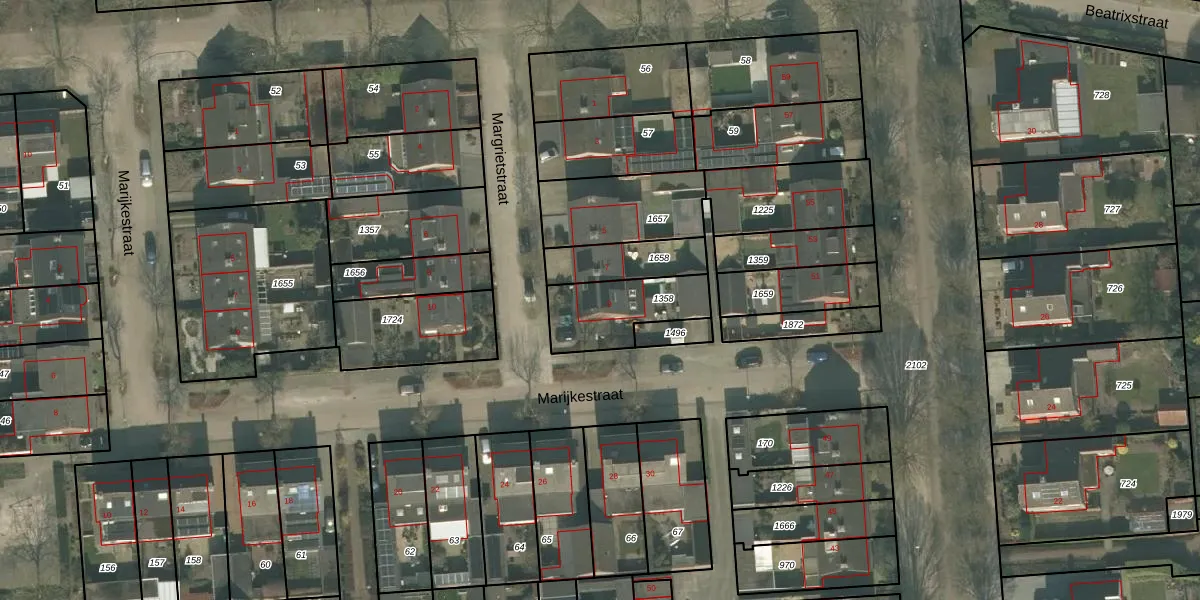 Gebruik de zoekbalk of klik op een perceel voor informatie over de adressen binnen dit perceel.