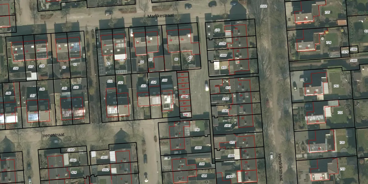 Het perceel waarop Marijkestraat 56 staat heeft een oppervlakte van 138 m². Dit is een middelgroot perceel. De perceeloppervlakte wordt geregistreerd door het Kadaster. Gedetailleerde informatie over de maten van dit perceel kunt u vinden in het rapport Kadastrale kaart met maatvoering van Marijkestraat 56.