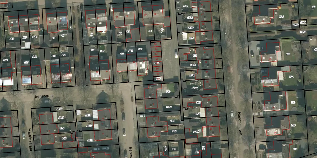 Gebruik de zoekbalk of klik op een perceel voor informatie over de adressen binnen dit perceel.