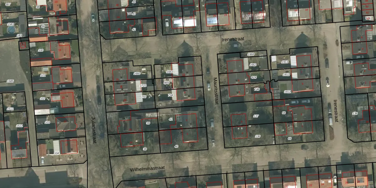 Gebruik de zoekbalk of klik op een perceel voor informatie over de adressen binnen dit perceel.