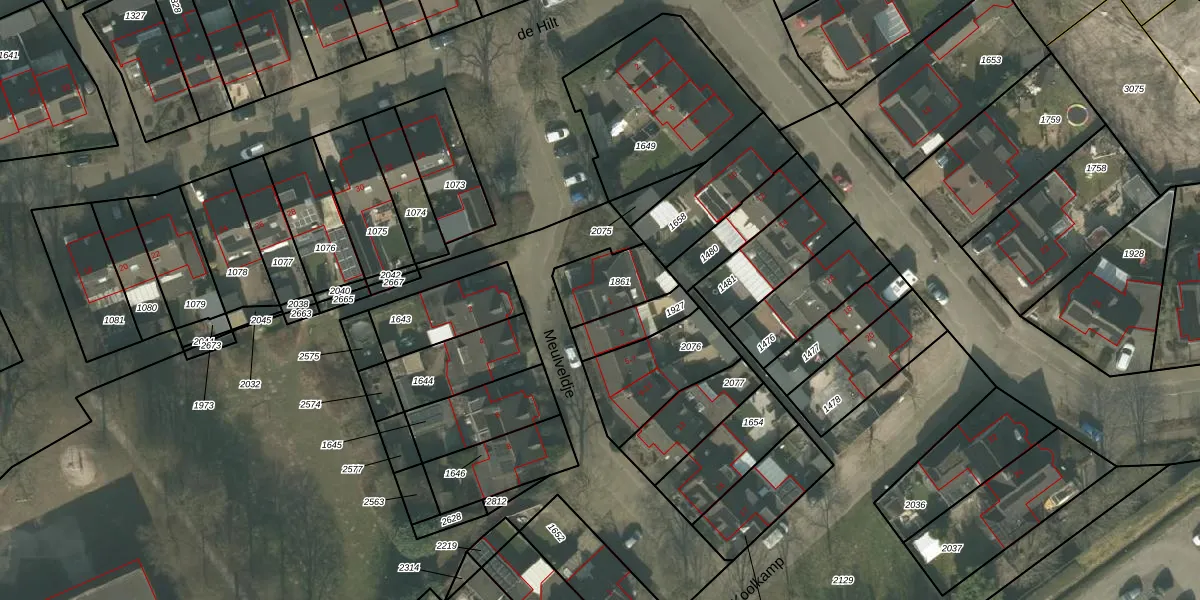 Het perceel waarop Meulveldje 1 staat heeft een oppervlakte van 179 m². Dit is een middelgroot perceel. De perceeloppervlakte wordt geregistreerd door het Kadaster. Gedetailleerde informatie over de maten van dit perceel kunt u vinden in het rapport Kadastrale kaart met maatvoering van Meulveldje 1.