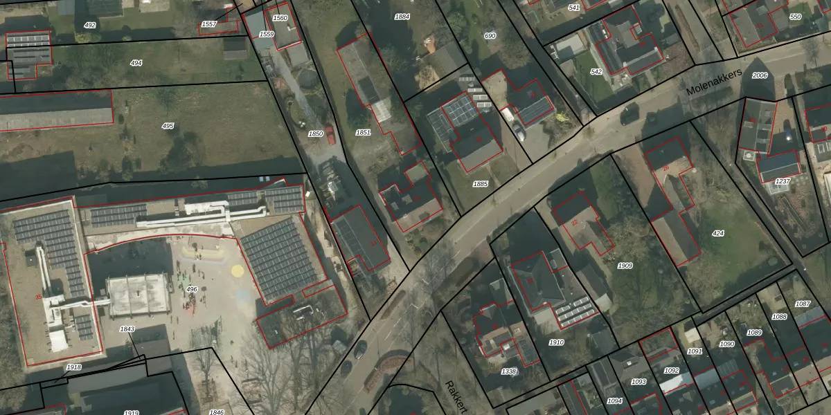 Het perceel waarop Molenakkers 15 staat heeft een oppervlakte van 1138 m². Dit is een zeer groot perceel. De perceeloppervlakte wordt geregistreerd door het Kadaster. Gedetailleerde informatie over de maten van dit perceel kunt u vinden in het rapport Kadastrale kaart met maatvoering van Molenakkers 15.