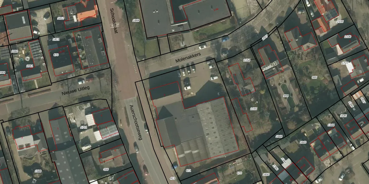 Het perceel waarop Molenakkers 2-m staat heeft een oppervlakte van 2405 m². Dit is een zeer groot perceel. De perceeloppervlakte wordt geregistreerd door het Kadaster. Gedetailleerde informatie over de maten van dit perceel kunt u vinden in het rapport Kadastrale kaart met maatvoering van Molenakkers 2-m.