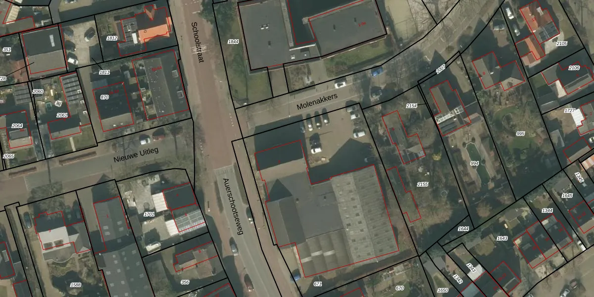 Het perceel waarop Molenakkers 2-f staat heeft een oppervlakte van 2405 m². Dit is een zeer groot perceel. De perceeloppervlakte wordt geregistreerd door het Kadaster. Gedetailleerde informatie over de maten van dit perceel kunt u vinden in het rapport Kadastrale kaart met maatvoering van Molenakkers 2-f.