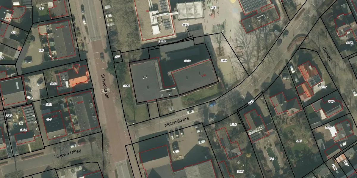 Het perceel waarop Molenakkers 9-a staat heeft een oppervlakte van 1251 m². Dit is een zeer groot perceel. De perceeloppervlakte wordt geregistreerd door het Kadaster. Gedetailleerde informatie over de maten van dit perceel kunt u vinden in het rapport Kadastrale kaart met maatvoering van Molenakkers 9-a.