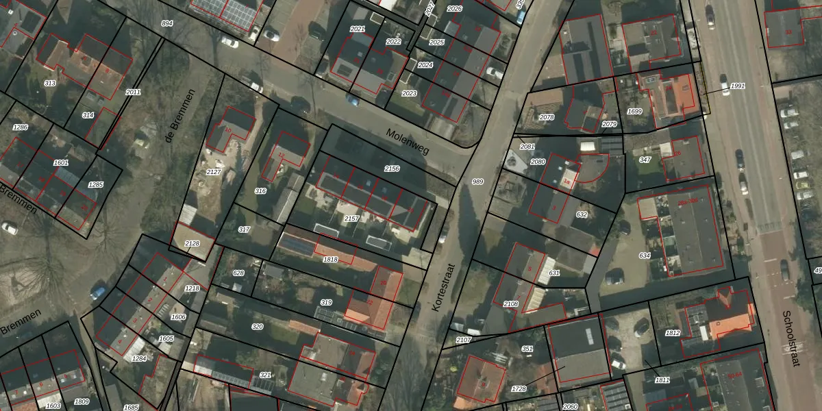 Het perceel waarop Molenweg 20 staat heeft een oppervlakte van 582 m². Dit is een groot perceel. De perceeloppervlakte wordt geregistreerd door het Kadaster. Gedetailleerde informatie over de maten van dit perceel kunt u vinden in het rapport Kadastrale kaart met maatvoering van Molenweg 20.