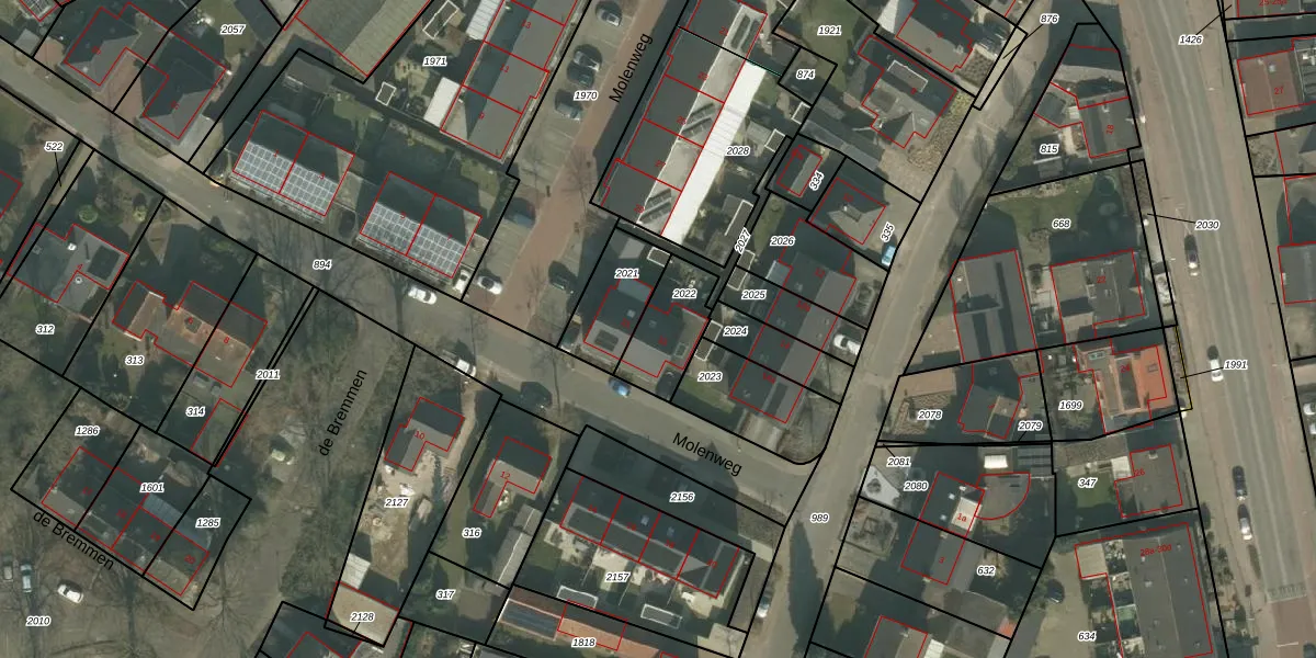 Molenweg 33 is gelegen op kadastraal perceel BKL02T2022. Deze kadastrale aanduiding is uniek en wordt gebruikt door het Kadaster om eigendomsrechten en andere zakelijke rechten vast te leggen. Het perceel maakt onderdeel uit van de kadastrale gemeente Bakel en Milheeze.