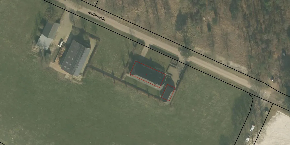 Het perceel waarop Nederheide 2 staat heeft een oppervlakte van 2,3 ha. Dit is een zeer groot perceel. De perceeloppervlakte wordt geregistreerd door het Kadaster. Gedetailleerde informatie over de maten van dit perceel kunt u vinden in het rapport Kadastrale kaart met maatvoering van Nederheide 2.