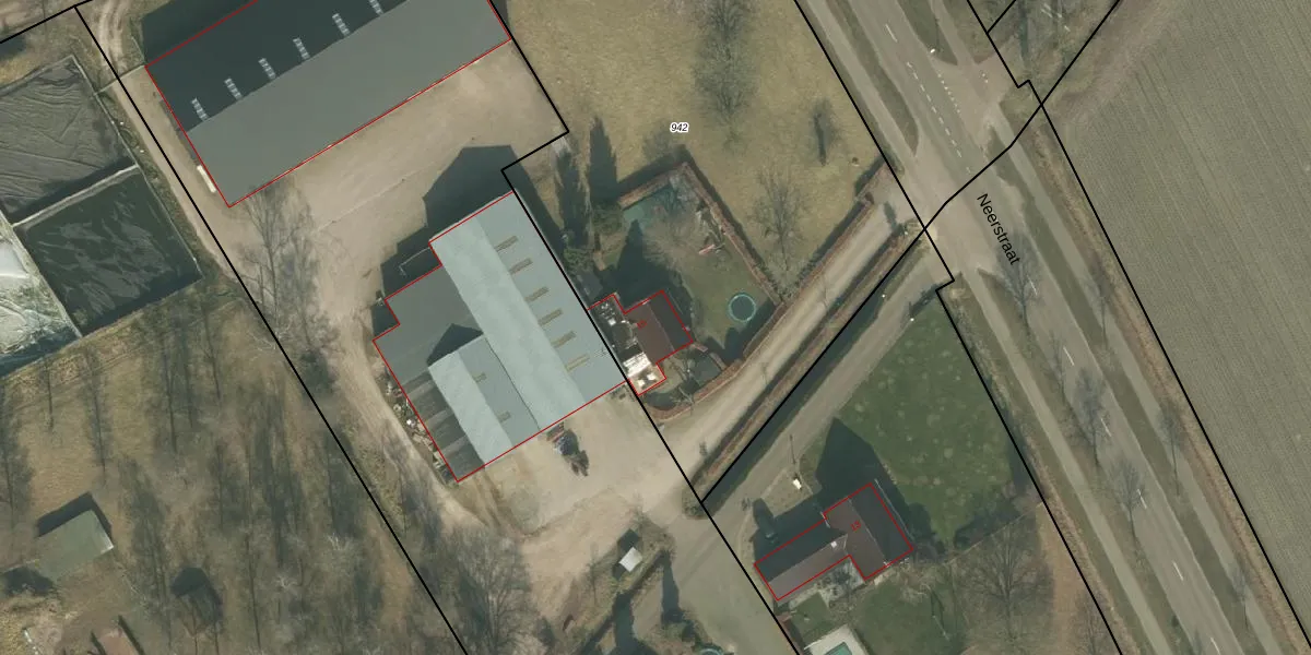 Het perceel waarop Neerstraat 15 staat heeft een oppervlakte van 4553 m². Dit is een zeer groot perceel. De perceeloppervlakte wordt geregistreerd door het Kadaster. Gedetailleerde informatie over de maten van dit perceel kunt u vinden in het rapport Kadastrale kaart met maatvoering van Neerstraat 15.