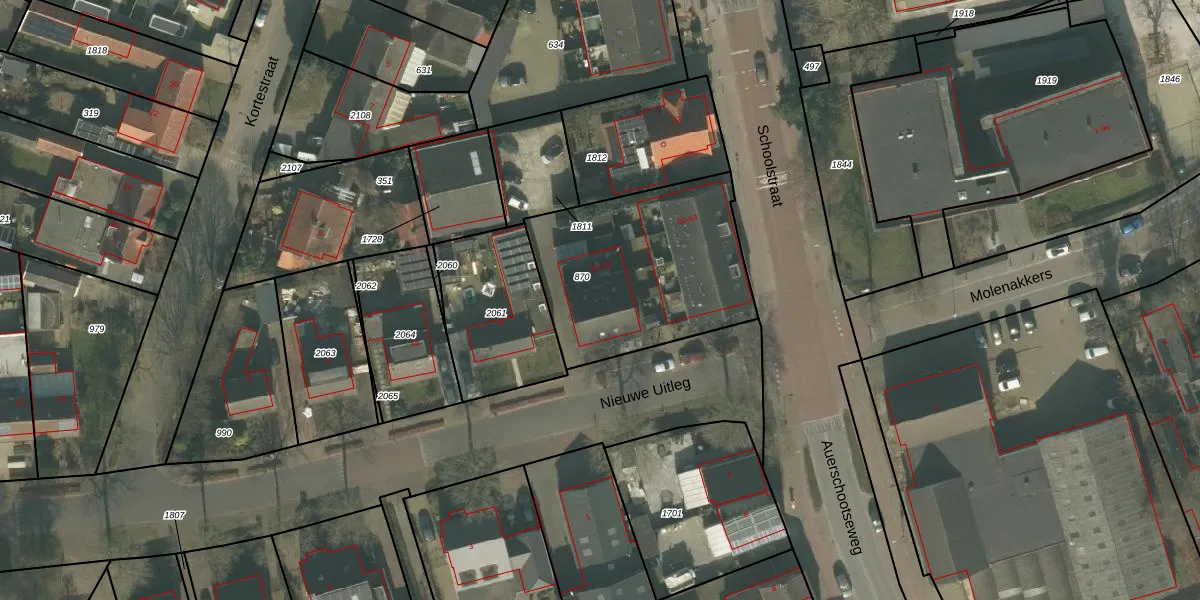 Het perceel waarop Nieuwe Uitleg 2-c staat heeft een oppervlakte van 869 m². Dit is een groot perceel. De perceeloppervlakte wordt geregistreerd door het Kadaster. Gedetailleerde informatie over de maten van dit perceel kunt u vinden in het rapport Kadastrale kaart met maatvoering van Nieuwe Uitleg 2-c.