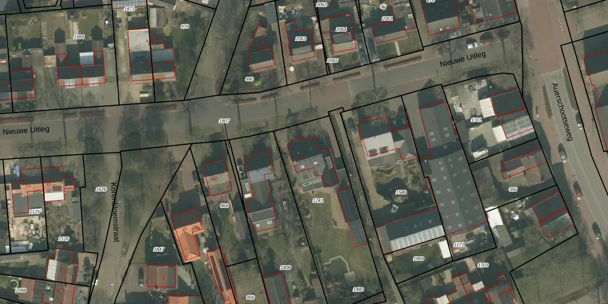 Het perceel waarop Nieuwe Uitleg 5 staat heeft een oppervlakte van 1164 m². Dit is een zeer groot perceel. De perceeloppervlakte wordt geregistreerd door het Kadaster. Gedetailleerde informatie over de maten van dit perceel kunt u vinden in het rapport Kadastrale kaart met maatvoering van Nieuwe Uitleg 5.