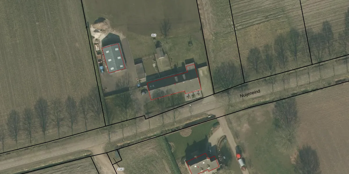 Het perceel waarop Nuijeneind 2 staat heeft een oppervlakte van 5000 m². Dit is een zeer groot perceel. De perceeloppervlakte wordt geregistreerd door het Kadaster. Gedetailleerde informatie over de maten van dit perceel kunt u vinden in het rapport Kadastrale kaart met maatvoering van Nuijeneind 2.