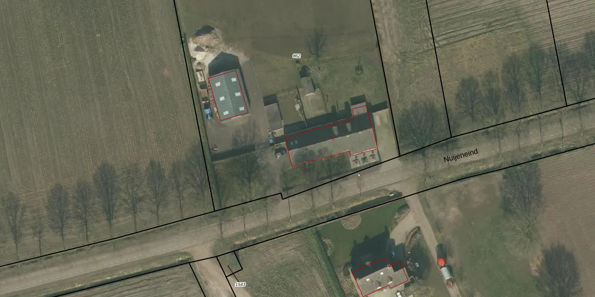 Het perceel waarop Nuijeneind 2-z staat heeft een oppervlakte van 5000 m². Dit is een zeer groot perceel. De perceeloppervlakte wordt geregistreerd door het Kadaster. Gedetailleerde informatie over de maten van dit perceel kunt u vinden in het rapport Kadastrale kaart met maatvoering van Nuijeneind 2-z.