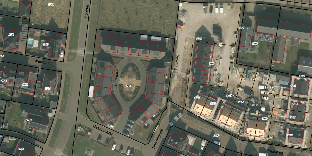 Ossenmarkt 12 is gelegen op kadastraal perceel BKL02N2497. Deze kadastrale aanduiding is uniek en wordt gebruikt door het Kadaster om eigendomsrechten en andere zakelijke rechten vast te leggen. Het perceel maakt onderdeel uit van de kadastrale gemeente Bakel en Milheeze.