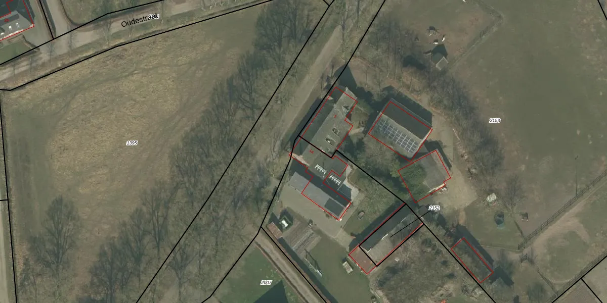 Het perceel waarop Oudestraat 1-a staat heeft een oppervlakte van 3222 m². Dit is een zeer groot perceel. De perceeloppervlakte wordt geregistreerd door het Kadaster. Gedetailleerde informatie over de maten van dit perceel kunt u vinden in het rapport Kadastrale kaart met maatvoering van Oudestraat 1-a.