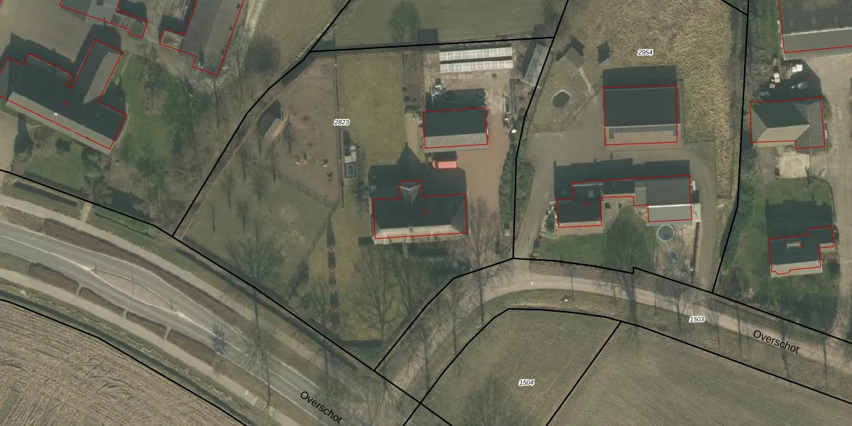 Het perceel waarop Overschot 17 staat heeft een oppervlakte van 4285 m². Dit is een zeer groot perceel. De perceeloppervlakte wordt geregistreerd door het Kadaster. Gedetailleerde informatie over de maten van dit perceel kunt u vinden in het rapport Kadastrale kaart met maatvoering van Overschot 17.