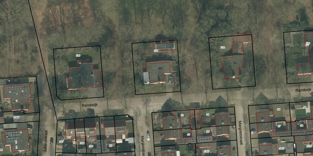 Het perceel waarop Randwijk 3 staat heeft een oppervlakte van 957 m². Dit is een groot perceel. De perceeloppervlakte wordt geregistreerd door het Kadaster. Gedetailleerde informatie over de maten van dit perceel kunt u vinden in het rapport Kadastrale kaart met maatvoering van Randwijk 3.