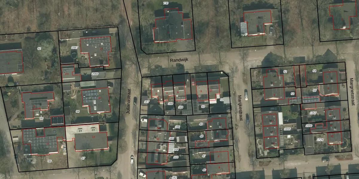 Gebruik de zoekbalk of klik op een perceel voor informatie over de adressen binnen dit perceel.