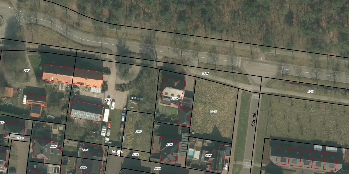 Het perceel waarop het adres ligt is BKL02-N-2799. De afkorting 'BKL02' staat voor kadastrale gemeente Bakel en Milheeze. Het perceel is 632 m² groot. Dat is kleiner dan de gemiddelde perceeloppervlakte in Bakel en Milheeze, dat op 9015,66 m² ligt. De grootste perceeloppervlakte in de kadastrale gemeente is 1,18 km². De kleinste oppervlakte bedraagt 0 m². Dit is het enige adres dat aanwezig is op het perceel. De huidige grenzen van het perceel zijn digitaal in de Basisregistratie Kadaster (BRK) geregistreerd op 25-01-2019.