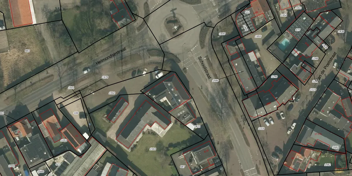 Het perceel waarop Schoolstraat 2 staat heeft een oppervlakte van 599 m². Dit is een groot perceel. De perceeloppervlakte wordt geregistreerd door het Kadaster. Gedetailleerde informatie over de maten van dit perceel kunt u vinden in het rapport Kadastrale kaart met maatvoering van Schoolstraat 2.